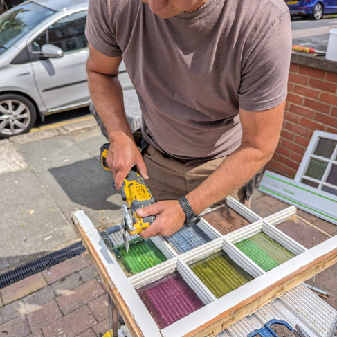 These pieces were then sent off to Specialist Glass Co. https://www.specialistglass-london.co.uk/ who upgraded them to individual, double-glazed segments. Here is an extract from their website explaining this: